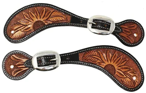 Spur Straps Leather Tooled with Nickel Buckle #29087