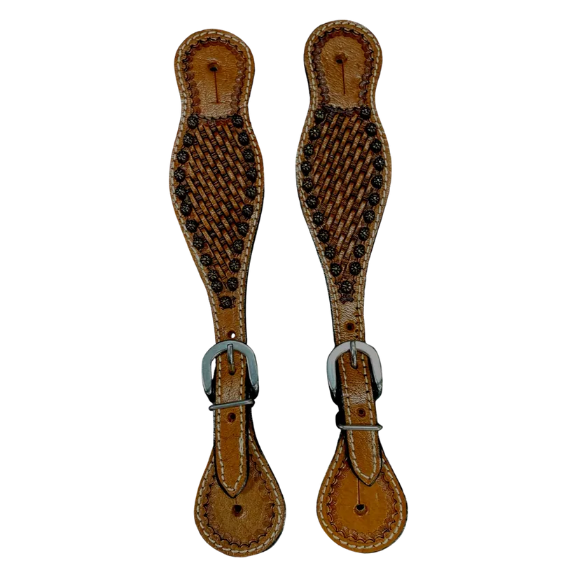 Spur Straps Leather Tooled with Dots and Stainless Steel Buckle #29089