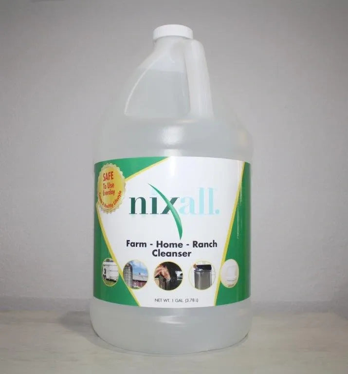 Earth-Friendly, Truly Green Cleanser Unlike traditional cleansers that contain harsh chemicals, Nixall® contains hypochlorous acid, a naturally occurring molecule of the human body, making it a very powerful deodorizer and cleaner, but still totally safe to use around your family and pets. Replacement for the everyday chemical cleansers Perfect for kitchen countertops and bathrooms Safe for use in the nursery or changing table * Safe for hands, and ideal for traveling in airports, hotels, public bathrooms, store carts, and rest stops * Deodorizes rooms, cars, lockers, and trash cans Can be used in humidifiers or air-cleaning systems Non-toxic to humans and pets Contains No VOCs, petrochemicals, sulfates, or bleach Environmentally safe and responsible 18-month shelf life * Nixall Cleanser is not to be used as an antimicrobial disinfectant or sanitizer to kill or mitigate bacteria, viruses, or pests on any surface – please use our Nixall Disinfectant/sanitizer. HOW TO USE: As a rule of thumb, dilute Nixall® Cleanser 10:1 or 5:1 ratio. 5 to 10 parts water to 1 part Nixall® Cleanser. Do not add to soaps or other products. Nixall® Cleanser’s unique formula works best by itself. Use Nixall® Cleanser to freshen laundry by removing odors, add a ¼ cup Nixall® to the RINSE cycle. For best results add the product to the second rinse cycle and avoid mixing with any other laundry product. Spray kitchen surfaces to clean and remove odors. Keep handy in the bathroom for quick clean ups and unexpected odors. Spray cat litterbox, birdcage, rabbit or hamster cage, or dog bed. Cleanse your fruits and veggies, homegrown or store-bought. Rest a little easier knowing your veggies are clean. Keep a bottle in the car to remove smoke odor from the car and clothing. Spray car’s interior. Spraying clothing will not stain fabric or leather. Removes perfume and fast food odors too. Remove odors from the refrigerator and cooking odors from the kitchen. * Nixall Cleanser is not to be used as an antimicrobial disinfectant or sanitizer to kill or mitigate bacteria, viruses, or pests on any surface – Please use our Nixall Disinfectant/Sanitizer.