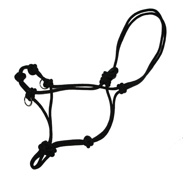 Training Side Pull Rope Halter 3/8" with Knots on the Nose and a ring on each side of muzzle. Rot-Resistant One Piece Construction