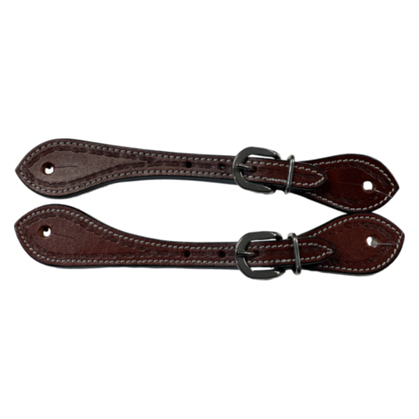 Spur Leather Straps Full grain leather western spur straps with Twisted Wire hand-tooling design. Stainless Steel Buckles
